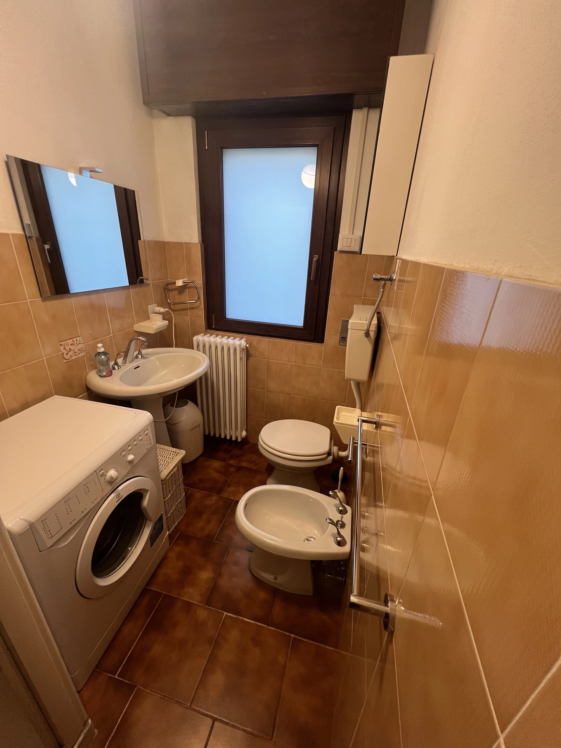 - Hauptbadezimmer mit Dusche, Bidet, WC und Waschmaschine.