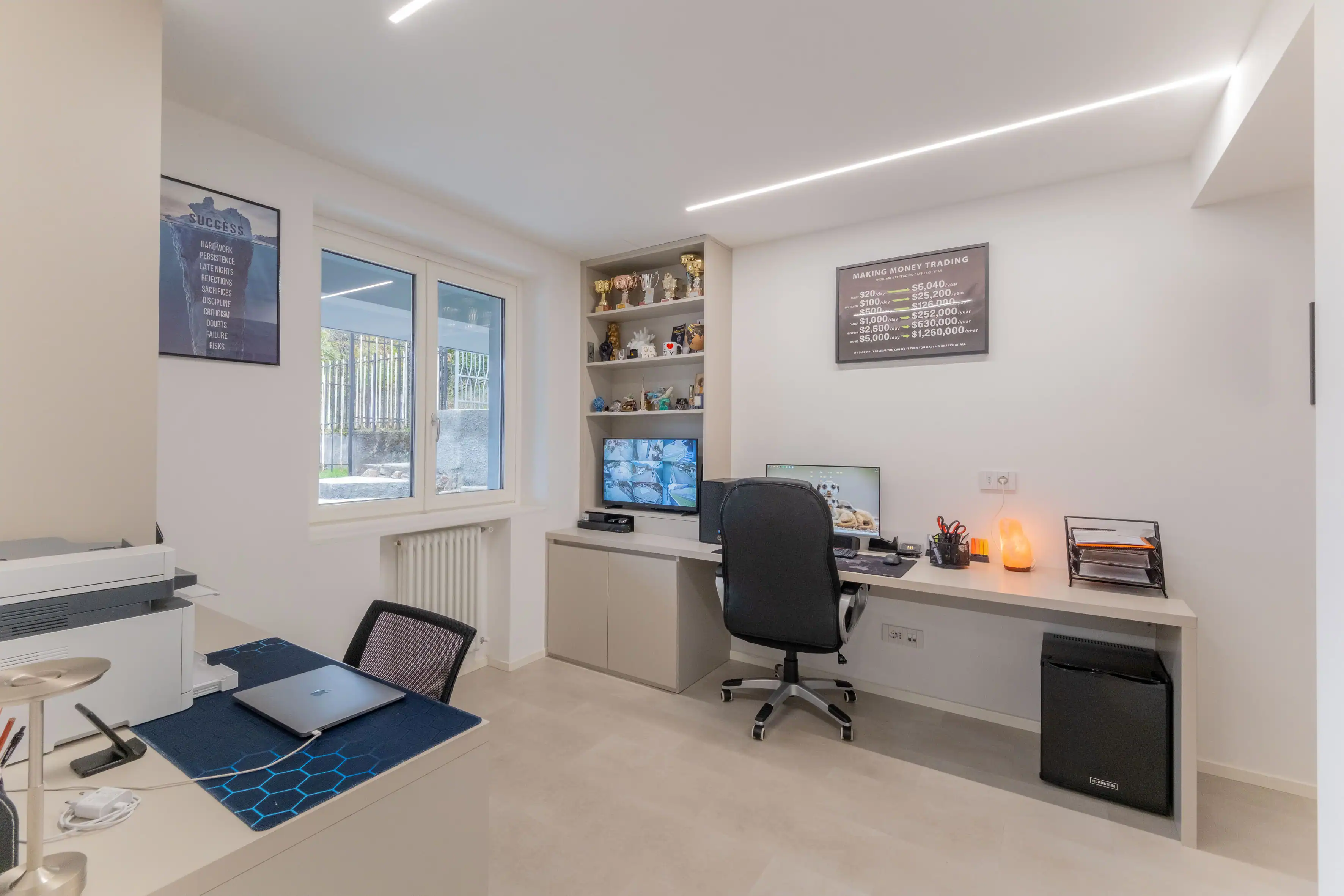 Due camere per gli ospiti, uno studio, bagno con doccia oversize, lavanderia e seconda zona living con balcone privato.